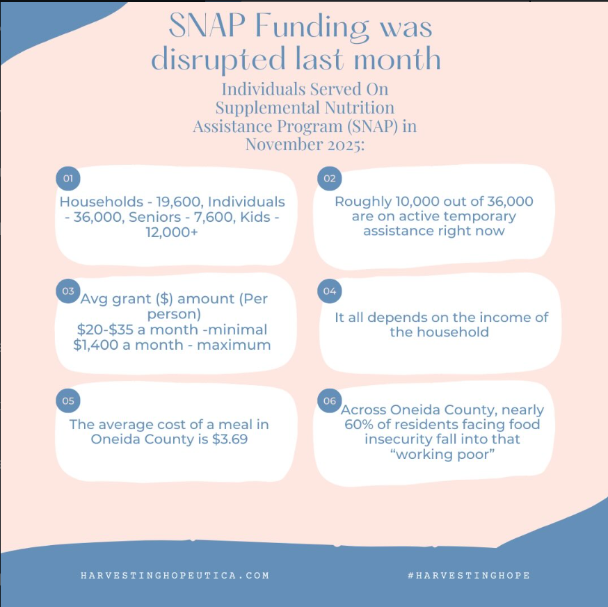 With the recent government shutdown affecting SNAP benefits, Oneida County residents will likely feel the impact. Here are some local food pantries and organizations that help with food distribution and more. Utica Food Pantry 524 Elizabeth St, Utica, NY 13501… Continue reading